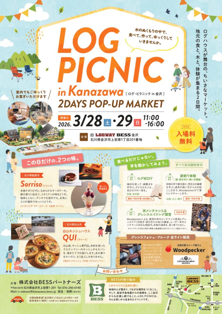 2026.3.28土/29日イベント BESSのログハウスでピクニックを楽しもう!